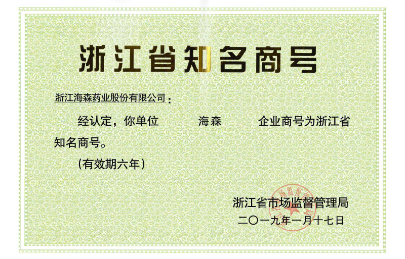 名稱變更為浙江海森藥業(yè)有限公司